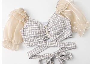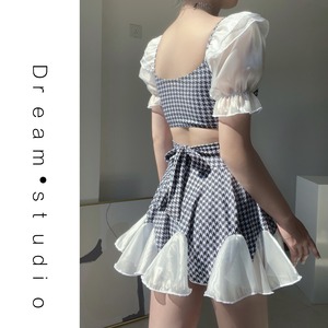 フリルデザインが可愛い千鳥格子スイムウェア。