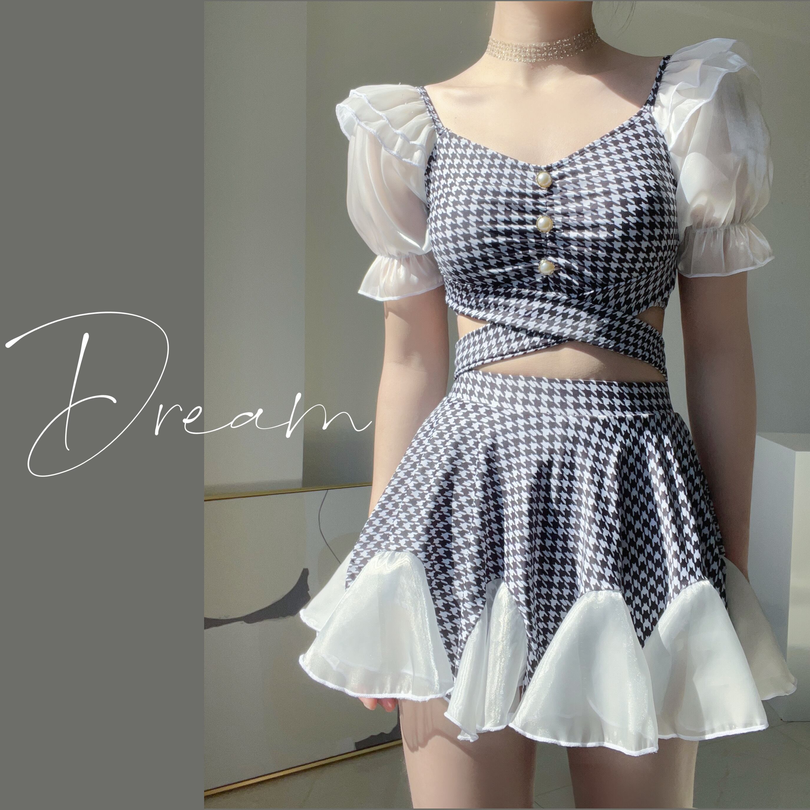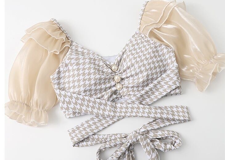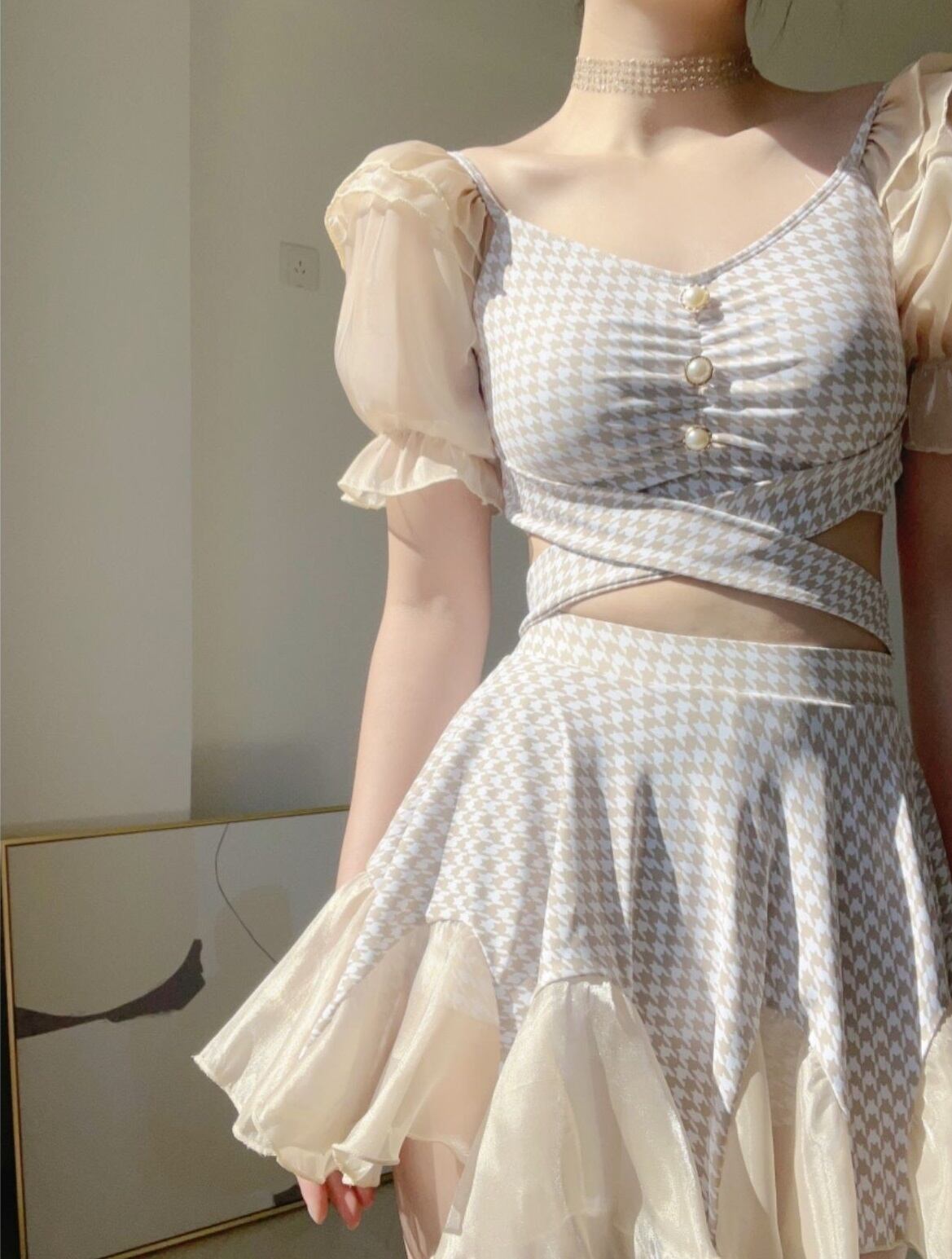【送料無料】レディース 水着 スイムウェア 千鳥格子 フリル袖 スプリット パフスリーブ クロス パール スカート 大人可愛い ママコーデ ママファッション 韓国系 オルチャン 人気 トレンド 新作 20代 30代 40代 スイムウェア 体型カバー ハイウエスト タンキニ ショートパンツ 大きいサイズ 可愛い ぽっちゃり パレオ パッド付き 小胸 UVカット カジュアル フェミニン セクシー リゾート 旅行 海 プール ママ水着 海水浴 夏 CO4212