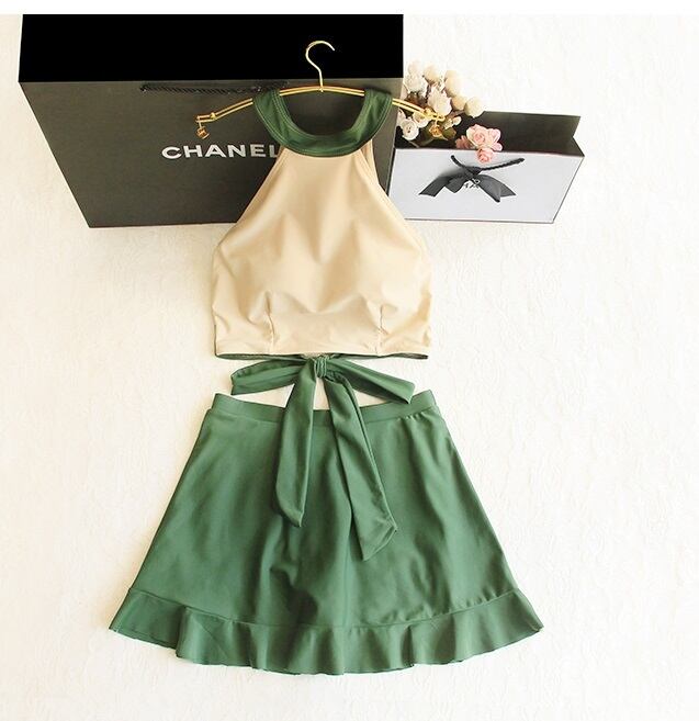 ホルターネックトップ&スカート付きパンツ セパレート水着2点セット!