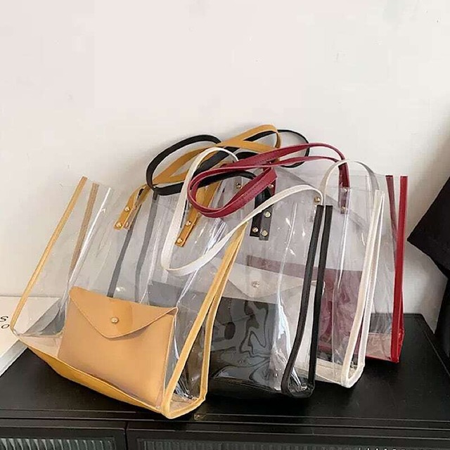 【送料無料】レディース クリアバッグ 2点セット 透明 ビニール トートバッグ バッグ 痛バック ポーチ付き 4色展開 カバン ガーリー 大人可愛い ママコーデ ママファッション 韓国系 オルチャン 人気 トレンド 新作 20代 30代 40代 バッグ 鞄 かわいい きれいめ レトロ シック 高見え お出かけ デート 女子会 旅行 お呼ばれ おしゃれ キャンパス 通勤 通学 デイリー 普段使い 軽量 収納 秋 春 夏 CO4254