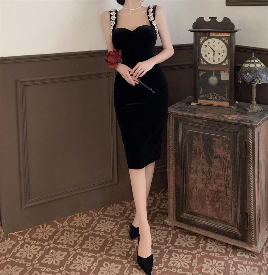 【送料無料】レディース ワンピース ベルベッド 主役級 セクシー キャミソール フランス風 パーティー ビジュー ジルコン ビロード ブラック 大人可愛い ママコーデ ママファッション 韓国 オルチャンファッション 人気 トレンド 新作 20代 30代 40代 きれいめ レトロ シンプル 無地 定番 お出かけ デート おしゃれ 通勤 通学 オフィス OL デイリー 普段着 ラフ カジュアル フェミニン シック ゆったり 体型カバー 着痩せ 着回し インスタ映え 秋 春 夏 CO4273