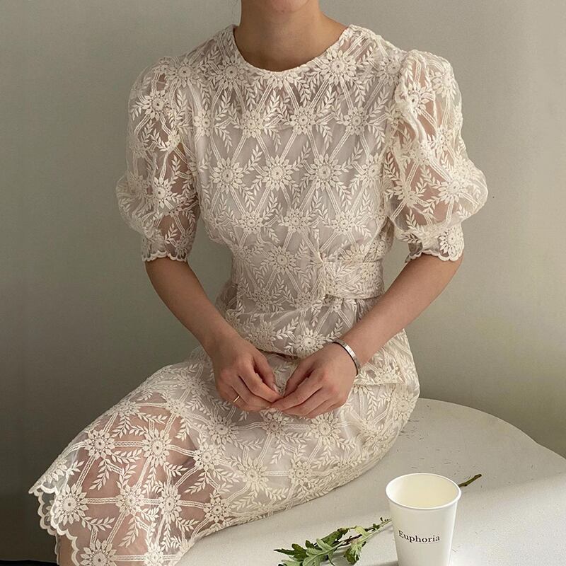 【送料無料】レディース 総レース パフスリーブ ワンピース 3色 花柄 半袖 肌見せ 透け感 ミディ ワンピースドレス 大人可愛い ママコーデ ママファッション 韓国 オルチャンファッション 人気 トレンド 新作 20代 30代 40代 きれいめ レトロ シンプル 無地 定番 お出かけ デート おしゃれ 通勤 通学 オフィス OL デイリー 普段着 ラフ カジュアル フェミニン シック ゆったり 体型カバー 着痩せ 着回し インスタ映え 秋 春 夏 CO4284