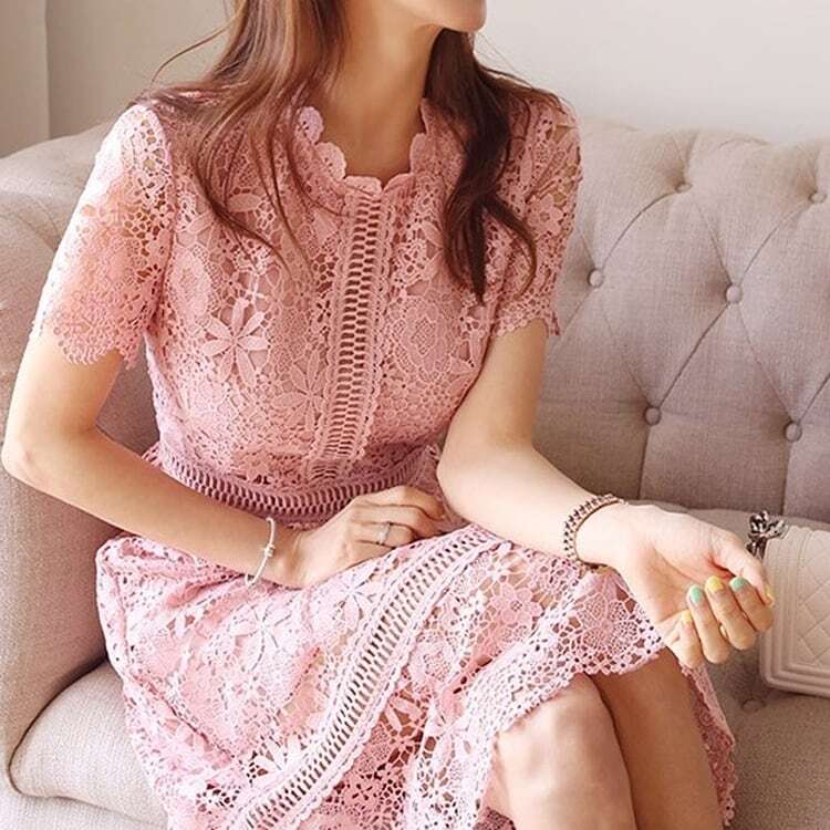 ♡上品な総レースが女性らしさを感じさせるドレス♡