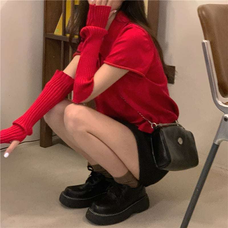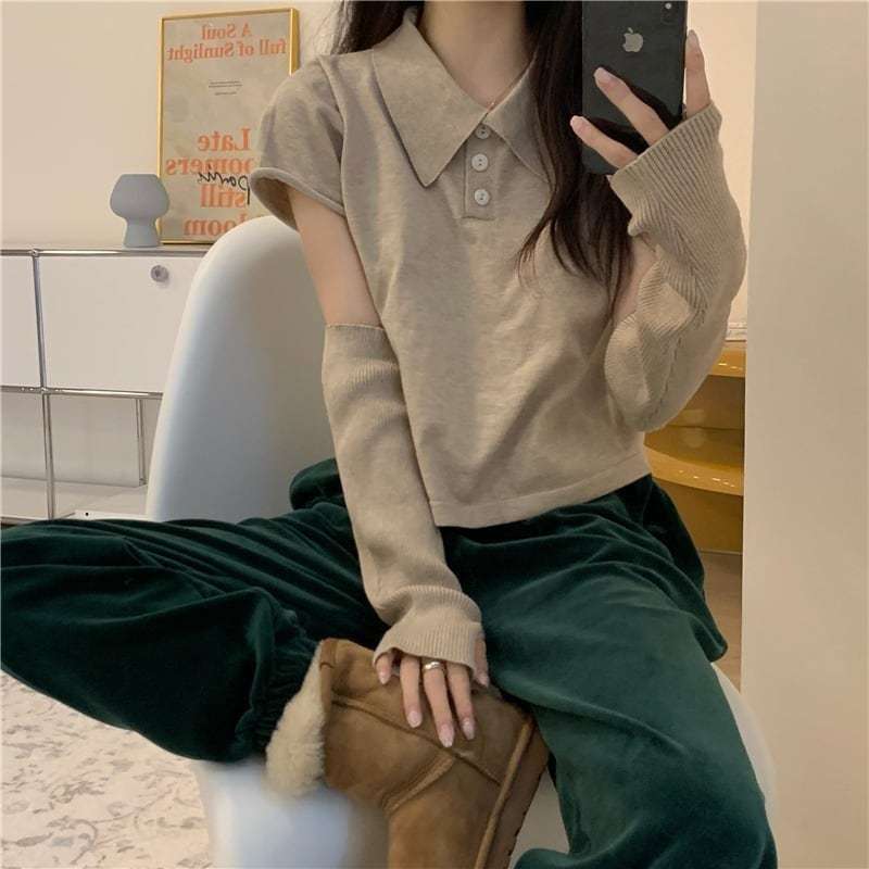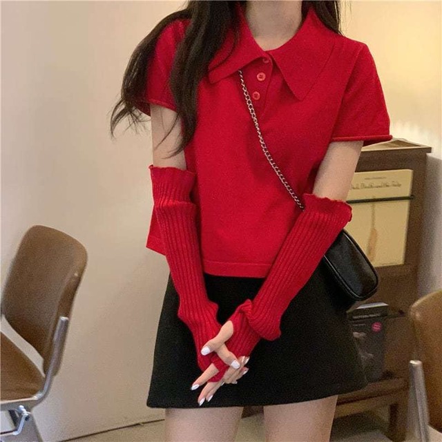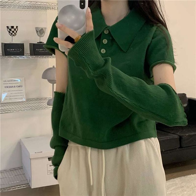 【送料無料】レディース アームカバー × クロップド ポロシャツ 半袖 韓国 トップス 大人可愛い ママコーデ ママファッション 韓国系 オルチャン 人気 トレンド 新作 20代 30代 40代 きれいめ レトロ シンプル お出かけ デート おしゃれ 通勤 通学 オフィス OL デイリー 普段着 ラフ カジュアル フェミニン シック ゆったり 体型カバー 着痩せ 着回し インスタ映え 春 秋 CO4319