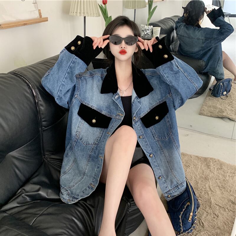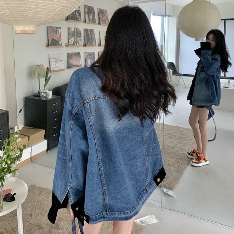 【送料無料】レディース バイカラー デニムジャケット アウター 萌え袖 襟付き ミディアム丈 ステッチ ウエスタン ブルー 大人可愛い ママコーデ ママファッション 韓国系 オルチャン 人気 トレンド 新作 20代 30代 40代 きれいめ レトロ シンプル お出かけ デート おしゃれ 通勤 通学 オフィス OL デイリー 普段着 ラフ カジュアル フェミニン シック ゆったり 体型カバー 着痩せ 着回し インスタ映え 春 秋 CO4330