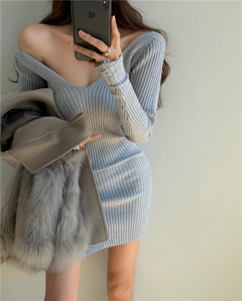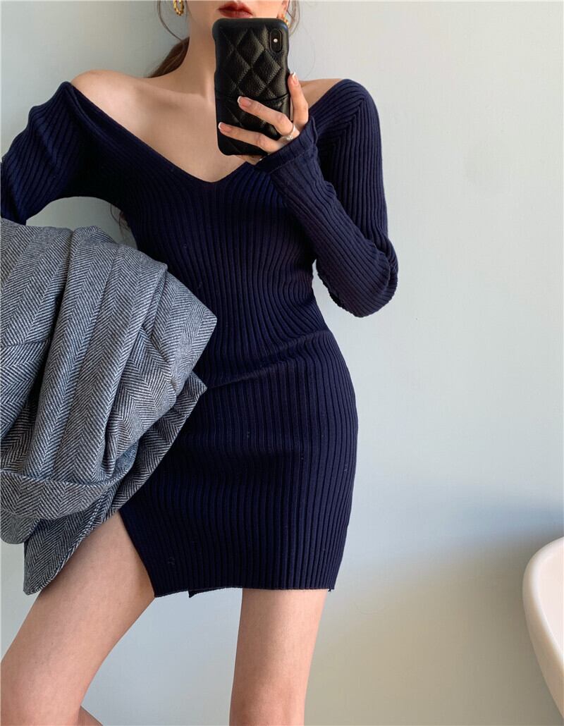 【送料無料】レディース Vネック ニット ワンピース ミニワンピ ショート丈 ミニ丈 長袖 リブ スリット 大人可愛い ママコーデ ママファッション 韓国系 オルチャン 人気 トレンド 新作 20代 30代 40代 きれいめ レトロ シンプル お出かけ デート おしゃれ 通勤 通学 オフィス OL デイリー 普段着 ラフ カジュアル フェミニン シック ゆったり 体型カバー 着痩せ 着回し インスタ映え 春 秋 CO4333