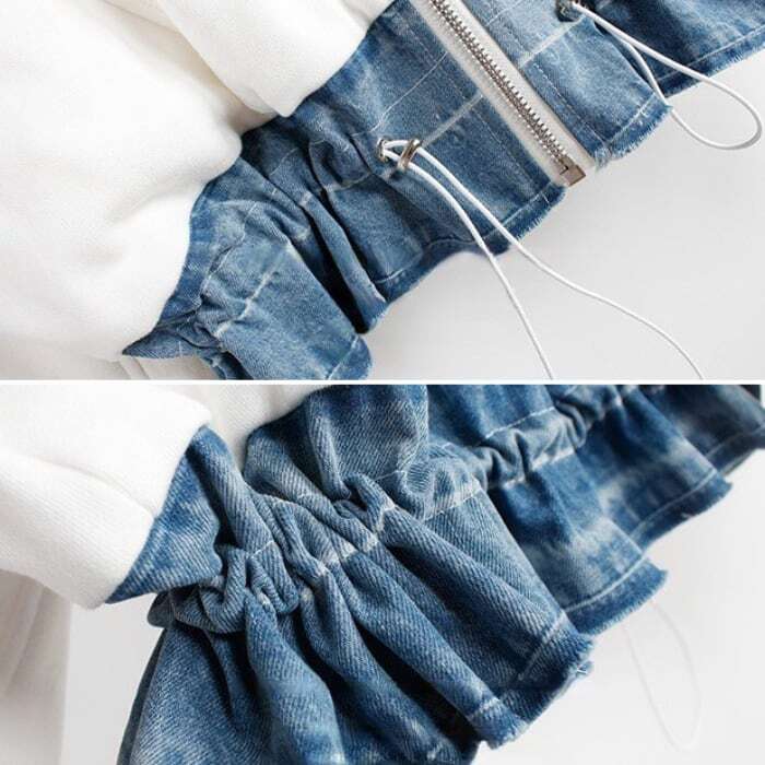 裾のデニムフリルとシルエットが可愛らしい、ボリュームスウェットパーカー。