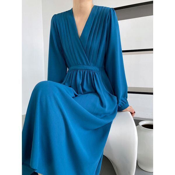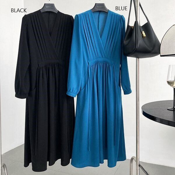 【送料無料】レディース ワンピース ドレープ Vネック カシュクール 長袖 パフスリーブ バックリボン タック 大人可愛い ママコーデ ママファッション 韓国系 オルチャン 人気 トレンド 新作 20代 30代 40代 きれいめ レトロ シンプル お出かけ デート おしゃれ 通勤 通学 オフィス OL デイリー 普段着 ラフ カジュアル フェミニン シック ゆったり 体型カバー 着痩せ 着回し インスタ映え 春 秋 CO4357
