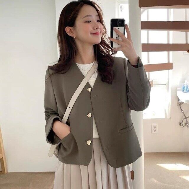 【送料無料】レディース ハートボタン スプリング ジャケット Vネック 長袖 大人可愛い ママコーデ ママファッション 韓国系 オルチャン 人気 トレンド 新作 20代 30代 40代 きれいめ レトロ シンプル お出かけ デート おしゃれ 通勤 通学 オフィス OL デイリー 普段着 ラフ カジュアル フェミニン シック ゆったり 体型カバー 着痩せ 着回し インスタ映え 春 秋 CO4375