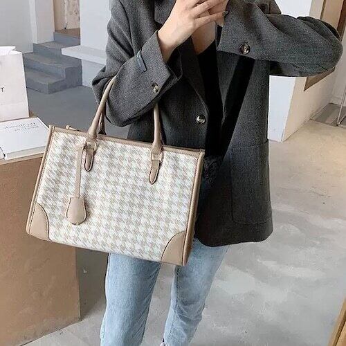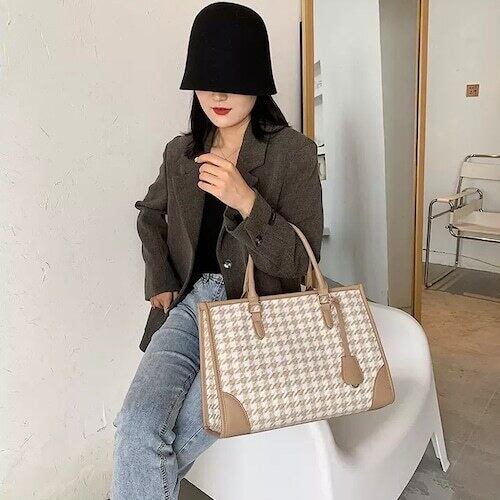 【送料無料】レディース カバン ハウンズトゥース トートバッグ ハンドバッグ ショルダーバッグ 千鳥 バイカラー 大人可愛い ママコーデ ママファッション 韓国系 オルチャン 人気 トレンド 新作 20代 30代 40代 バッグ 鞄 かわいい きれいめ レトロ シック 高見え お出かけ デート 女子会 旅行 お呼ばれ おしゃれ キャンパス 通勤 通学 デイリー 普段使い 軽量 収納 秋 春 CO4383