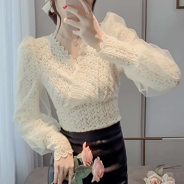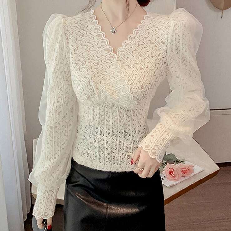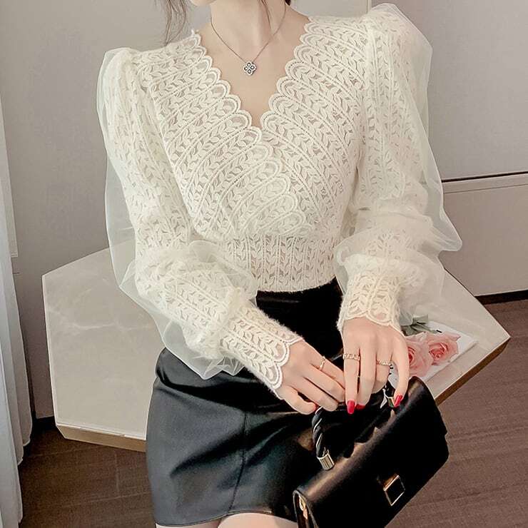 【送料無料】レディース クロスネック リーフレース トップス 2color カシュクール 長袖 大人可愛い ママコーデ ママファッション 韓国系 オルチャン 人気 トレンド 新作 20代 30代 40代 きれいめ レトロ シンプル お出かけ デート おしゃれ 通勤 通学 オフィス OL デイリー 普段着 ラフ カジュアル フェミニン シック ゆったり 体型カバー 着痩せ 着回し インスタ映え 春 秋 CO4411