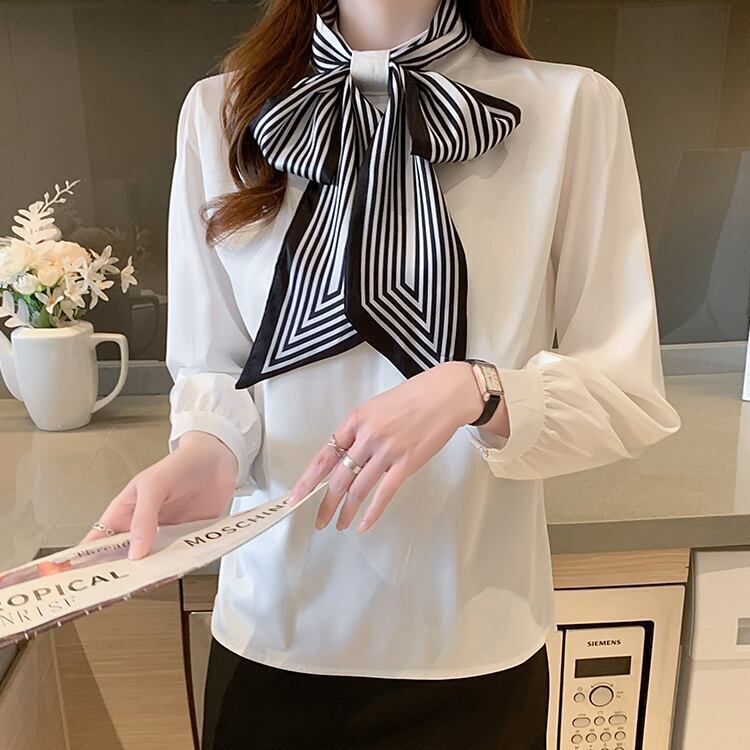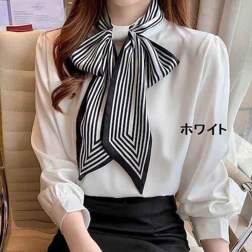 顔まわりを華やかに見せるスカーフボウタイブラウス。