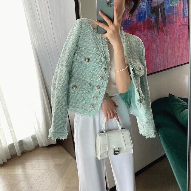 【送料無料】レディース ツイード ジャケット フリンジ ゴールドボタン Vネック 長袖 大人可愛い ママコーデ ママファッション 韓国系 オルチャン 人気 トレンド 新作 20代 30代 40代 きれいめ レトロ シンプル お出かけ デート おしゃれ 通勤 通学 オフィス OL デイリー 普段着 ラフ カジュアル フェミニン シック ゆったり 体型カバー 着痩せ 着回し インスタ映え 春 秋 CO4447