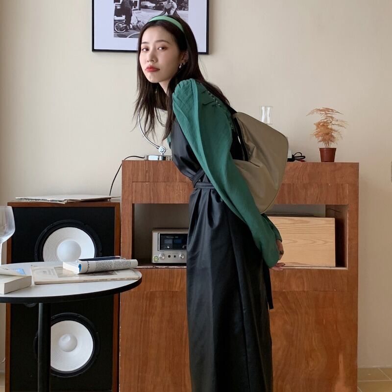 【送料無料】レディース セットアップ パフスリーブ ブラウス + レザー クロスストラップ ワンピース バックリボン 長袖 大人可愛い ママコーデ ママファッション 韓国系 オルチャン 人気 トレンド 新作 20代 30代 40代 きれいめ レトロ シンプル お出かけ デート おしゃれ 通勤 通学 オフィス OL デイリー 普段着 ラフ カジュアル フェミニン シック ゆったり 体型カバー 着痩せ 着回し インスタ映え 春 秋 冬 CO4472