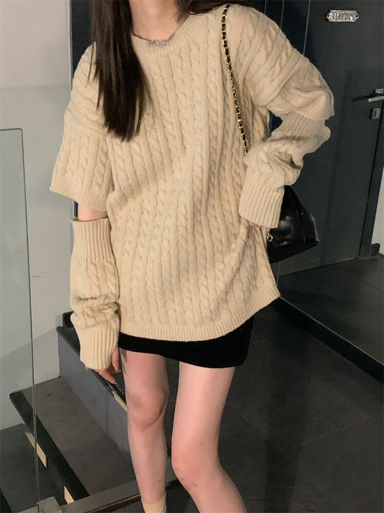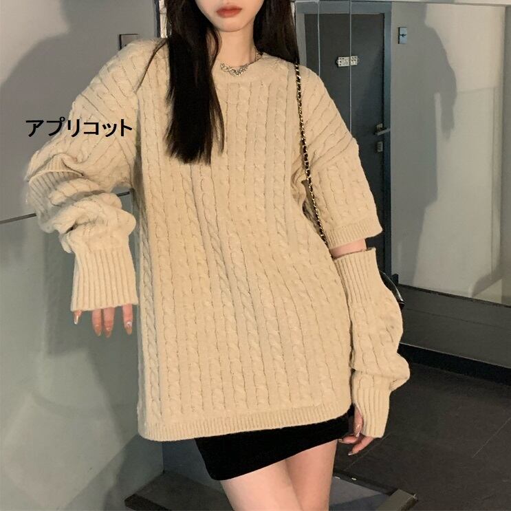 【送料無料】レディース アームカバー付き リブ ケーブル編み ニット トップス ドロップショルダー 大人可愛い ママコーデ ママファッション 韓国系 オルチャン 人気 トレンド 新作 20代 30代 40代 きれいめ レトロ シンプル お出かけ デート おしゃれ 通勤 通学 オフィス OL デイリー 普段着 ラフ カジュアル フェミニン シック ゆったり 体型カバー 着痩せ 着回し インスタ映え 春 秋 冬 CO4473