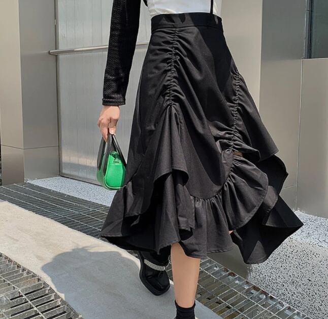 【送料無料】レディース ハイウエスト Aライン フィッシュテール スカート フリル スリット 大人可愛い ママコーデ ママファッション 韓国系 オルチャン 人気 トレンド 新作 20代 30代 40代 きれいめ レトロ シンプル お出かけ デート おしゃれ 通勤 通学 オフィス OL デイリー 普段着 ラフ カジュアル フェミニン シック ゆったり 体型カバー 着痩せ 着回し インスタ映え 春 秋 冬 CO4479