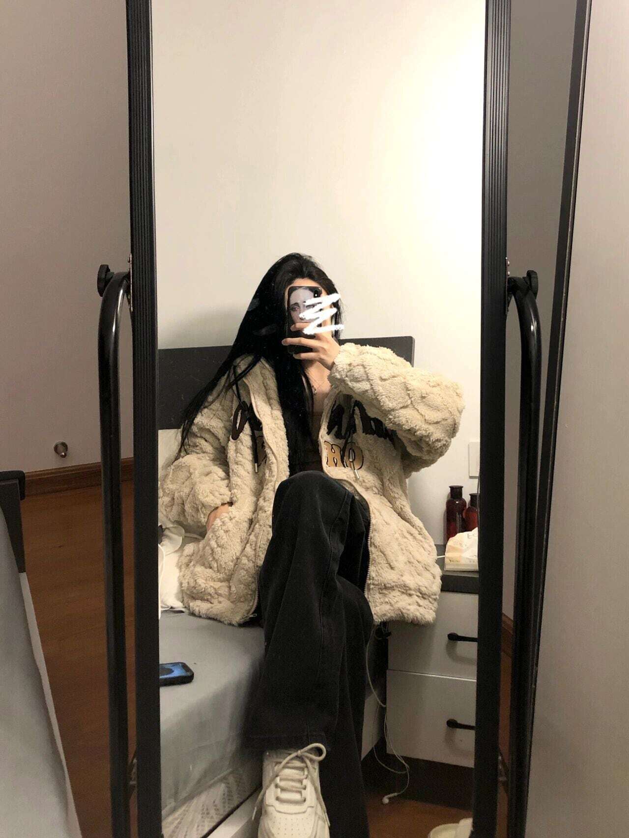 【送料無料】レディース 長袖 ジャケット ロング丈 ビックシルエット ベルベット セーター ボア フード付き アウター ロゴ カッコイイ クール シック 大人可愛い ママコーデ ママファッション 韓国系 オルチャン 人気 トレンド 新作 20代 30代 40代 きれいめ レトロ シンプル お出かけ デート おしゃれ 通勤 通学 オフィス OL デイリー 普段着 ラフ カジュアル フェミニン シック ゆったり 体型カバー 着痩せ 着回し インスタ映え 春 秋 冬 CO4486