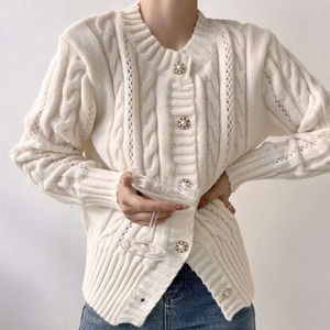 【送料無料】レディース パールボタン ケーブル ニット カーディガン クルーネック 長袖 羽織り アウター 大人可愛い ママコーデ ママファッション 韓国系 オルチャン 人気 トレンド 新作 20代 30代 40代 きれいめ レトロ シンプル お出かけ デート おしゃれ 通勤 通学 オフィス OL デイリー 普段着 ラフ カジュアル フェミニン シック ゆったり 体型カバー 着痩せ 着回し インスタ映え 春 秋 冬 CO4498