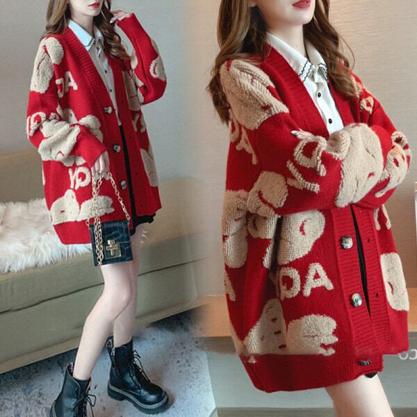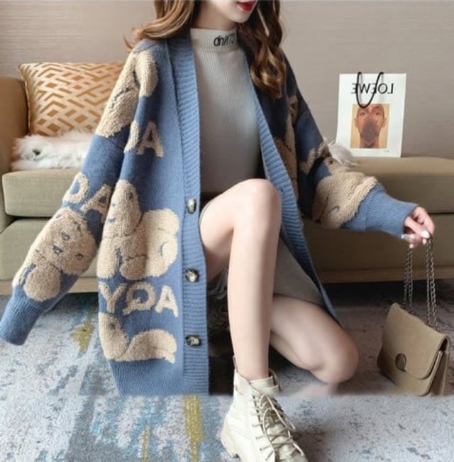 【送料無料】レディース ニット カーディガン ルーズ トップス もこもこ あったか ビックシルエット くま アルファベット柄 大人可愛い ママコーデ ママファッション 韓国系 オルチャン 人気 トレンド 新作 20代 30代 40代 きれいめ レトロ シンプル お出かけ デート おしゃれ 通勤 通学 オフィス OL デイリー 普段着 ラフ カジュアル フェミニン シック ゆったり 体型カバー 着痩せ 着回し インスタ映え 春 秋 冬 CO4504