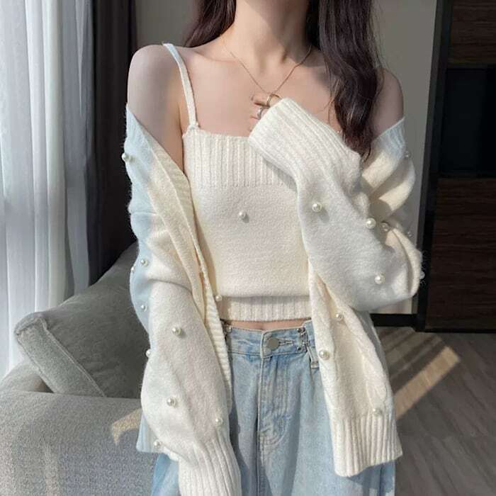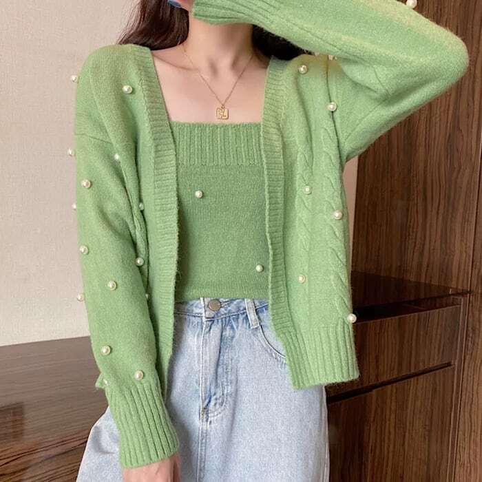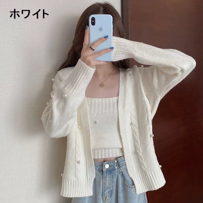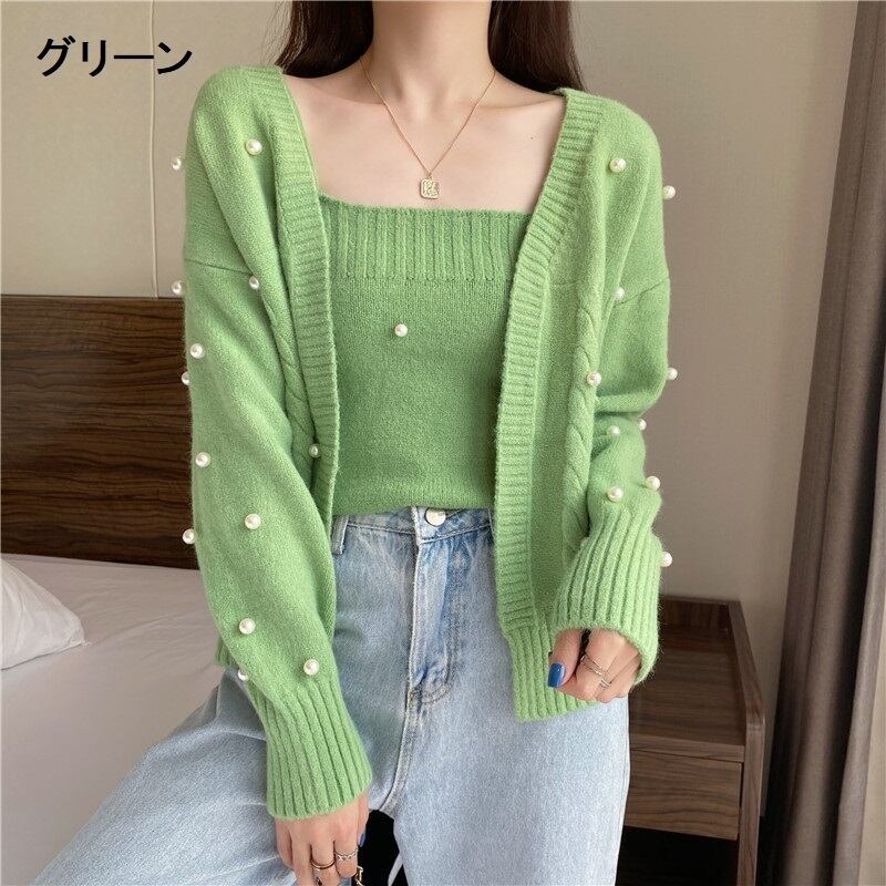 【送料無料】レディース カーディガン & キャミ トレンド韓国女子 2点セット カーディガン キャミ ニット パール 韓国っぽ 大人可愛い ママコーデ ママファッション 韓国系 オルチャン 人気 トレンド 新作 20代 30代 40代 きれいめ レトロ シンプル お出かけ デート おしゃれ 通勤 通学 オフィス OL デイリー 普段着 ラフ カジュアル フェミニン シック ゆったり 体型カバー 着痩せ 着回し インスタ映え 春 秋 冬 CO4533
