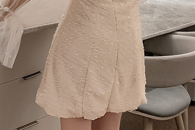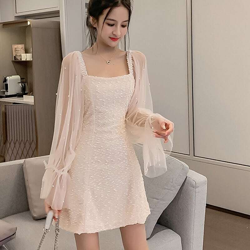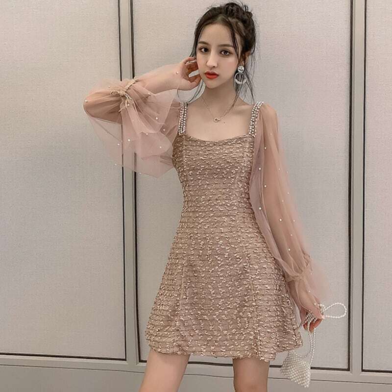 キャンディー袖とパールがパーティーシーンに華を添えるドレス。