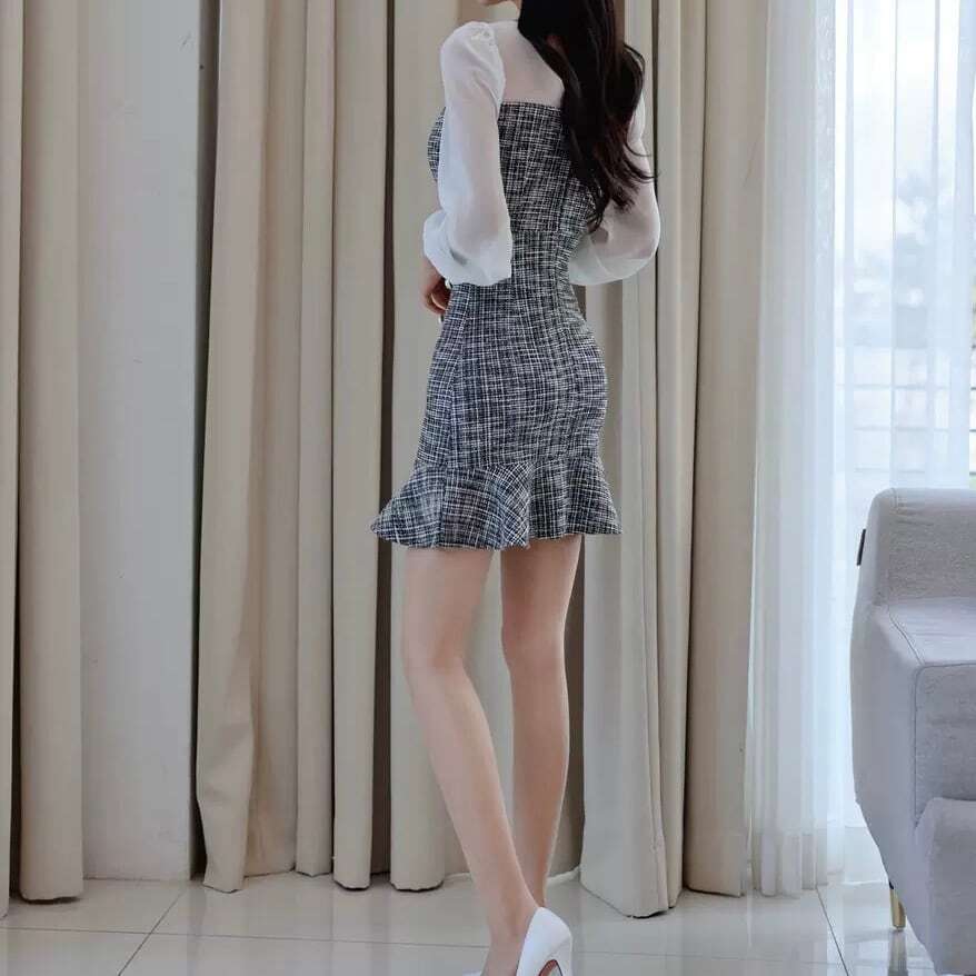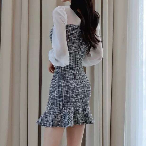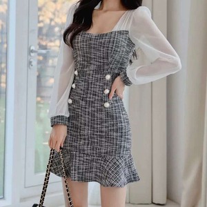 【送料無料】レディース ワンピース きれいめ パフスリーブ マーメイドワンピース ミニワンピース セクシー 透け感 チェック柄 ゴールドボタン 大人可愛い ママコーデ ママファッション 韓国系 オルチャン 人気 トレンド 新作 20代 30代 40代 きれいめ レトロ シンプル お出かけ デート おしゃれ 通勤 通学 オフィス OL デイリー 普段着 ラフ カジュアル フェミニン シック ゆったり 体型カバー 着痩せ 着回し インスタ映え 春 秋 冬 CO4559