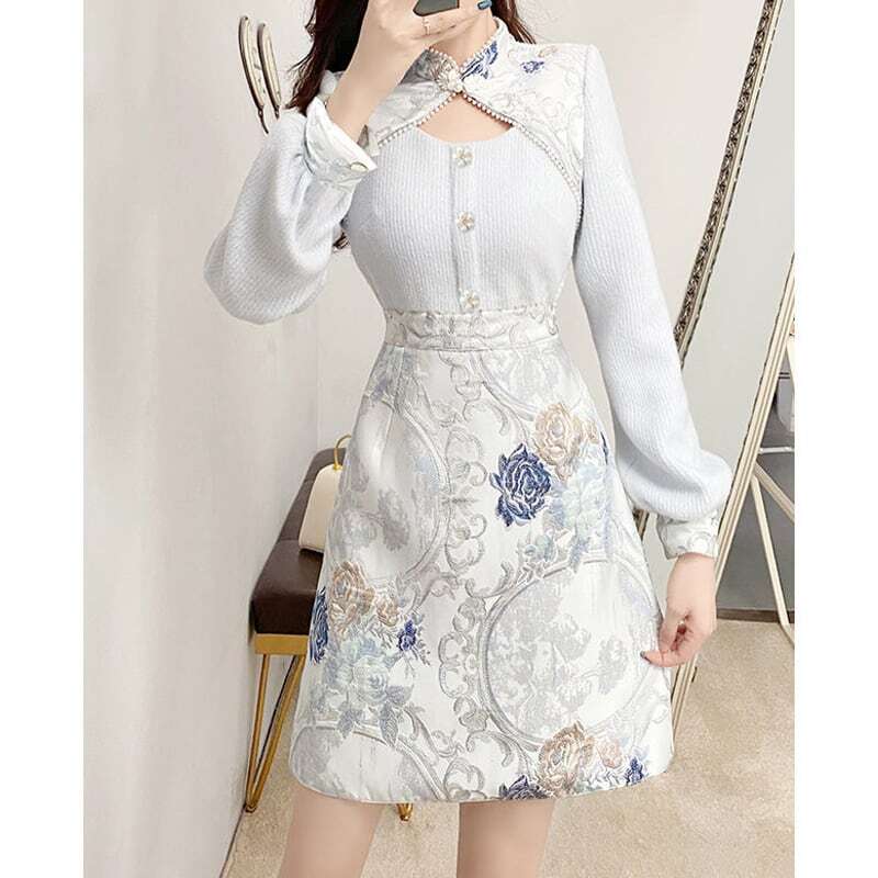 【送料無料】レディース ワンピース スウィート レトロ 刺繍 胸開き Aライン 花柄 フラワー パール チャイナ風 大人可愛い ママコーデ ママファッション 韓国系 オルチャン 人気 トレンド 新作 20代 30代 40代 きれいめ レトロ シンプル お出かけ デート おしゃれ 通勤 通学 オフィス OL デイリー 普段着 ラフ カジュアル フェミニン シック ゆったり 体型カバー 着痩せ 着回し インスタ映え 春 秋 冬 CO4578
