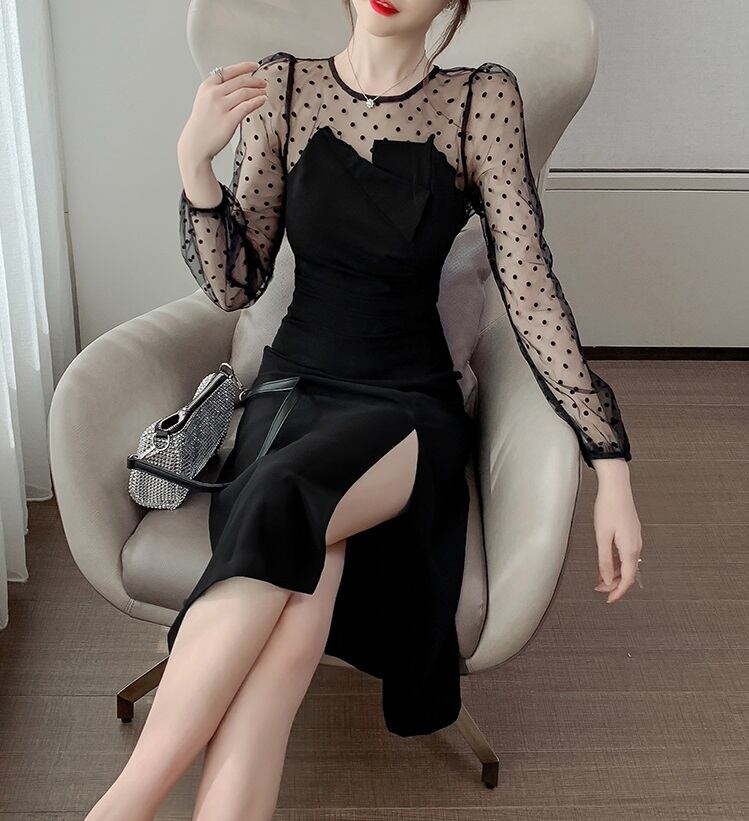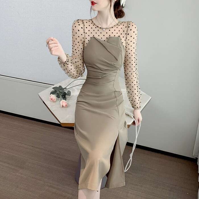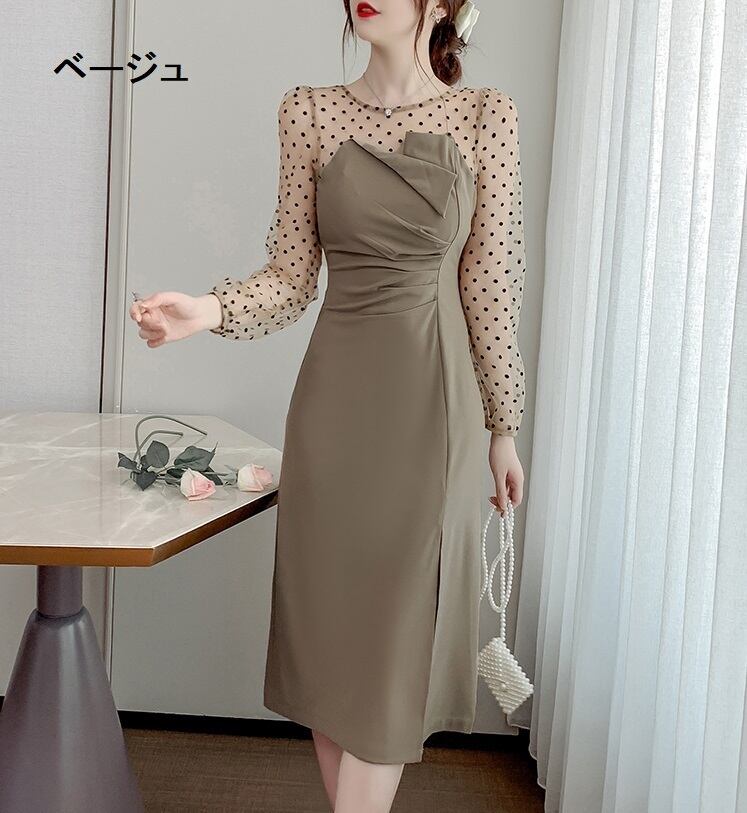 【送料無料】レディース ワンピース パーティー セクシー ドット柄 水玉 シースルー ラウンドネック 着まわし抜群 ベージュ ブラック 大人可愛い ママコーデ ママファッション 韓国系 オルチャン 人気 トレンド 新作 20代 30代 40代 きれいめ レトロ シンプル お出かけ デート おしゃれ 通勤 通学 オフィス OL デイリー 普段着 ラフ カジュアル フェミニン シック ゆったり 体型カバー 着痩せ 着回し インスタ映え 春 秋 冬 CO4580