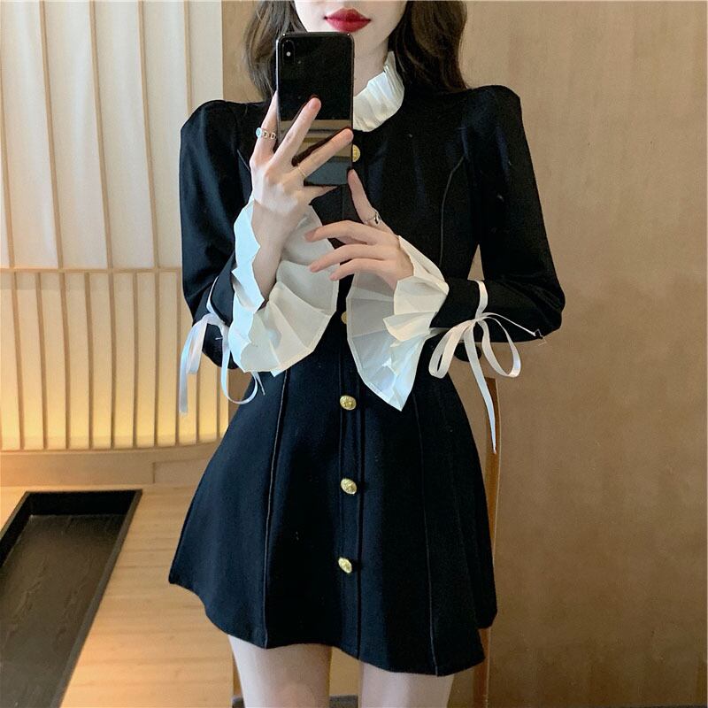 【送料無料】レディース ワンピース 長袖 レトロ 切り替え 視線集中 黒 ボタン Aライン 無地 エレガント スウィート 気質満点 ブラック ゴールドボタン 大人可愛い ママコーデ ママファッション 韓国系 オルチャン 人気 トレンド 新作 20代 30代 40代 きれいめ レトロ シンプル お出かけ デート おしゃれ 通勤 通学 オフィス OL デイリー 普段着 ラフ カジュアル フェミニン シック ゆったり 体型カバー 着痩せ 着回し インスタ映え 春 秋 冬 CO4583
