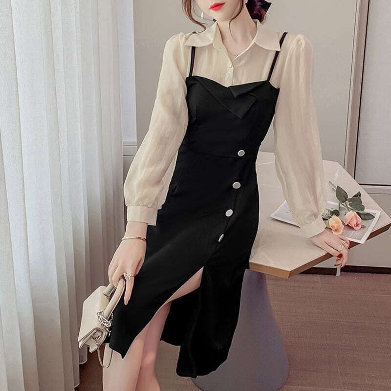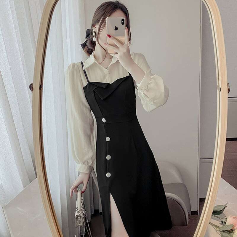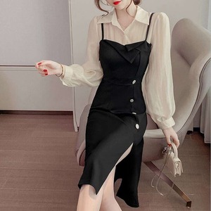【送料無料】レディース ワンピース フェイクレイヤード 襟付き スリット 長袖 お呼ばれ フォーマル エレガント 大人可愛い ママコーデ ママファッション 韓国系 オルチャン 人気 トレンド 新作 20代 30代 40代 きれいめ レトロ シンプル お出かけ デート おしゃれ 通勤 通学 オフィス OL デイリー 普段着 ラフ カジュアル フェミニン シック ゆったり 体型カバー 着痩せ 着回し インスタ映え 春 秋 冬 CO4668