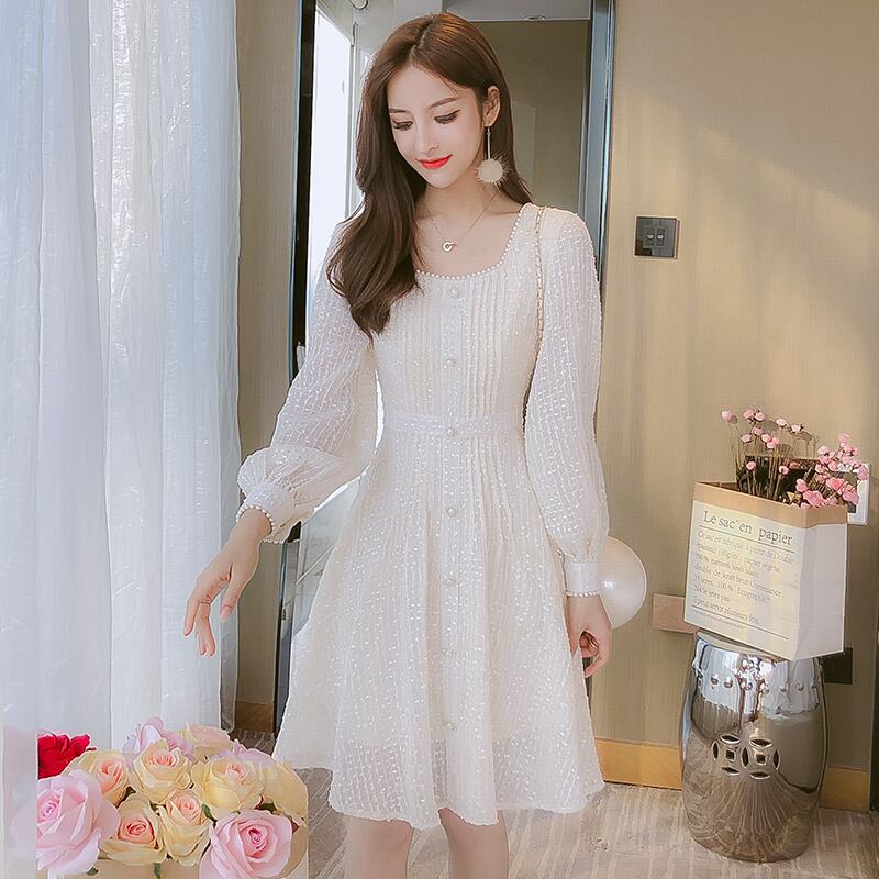 【送料無料】レディース ワンピース ドレス パフスリーブ 真珠 スクエアネック ボタンドカフス ハイウエスト 長袖 お呼ばれ パーティー フォーマル 大人可愛い ママコーデ ママファッション 韓国系 オルチャン 人気 トレンド 新作 20代 30代 40代 きれいめ レトロ シンプル お出かけ デート おしゃれ 通勤 通学 オフィス OL デイリー 普段着 ラフ カジュアル フェミニン シック ゆったり 体型カバー 着痩せ 着回し インスタ映え 春 秋 冬 CO4675