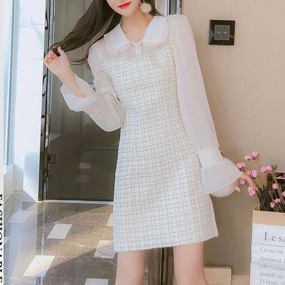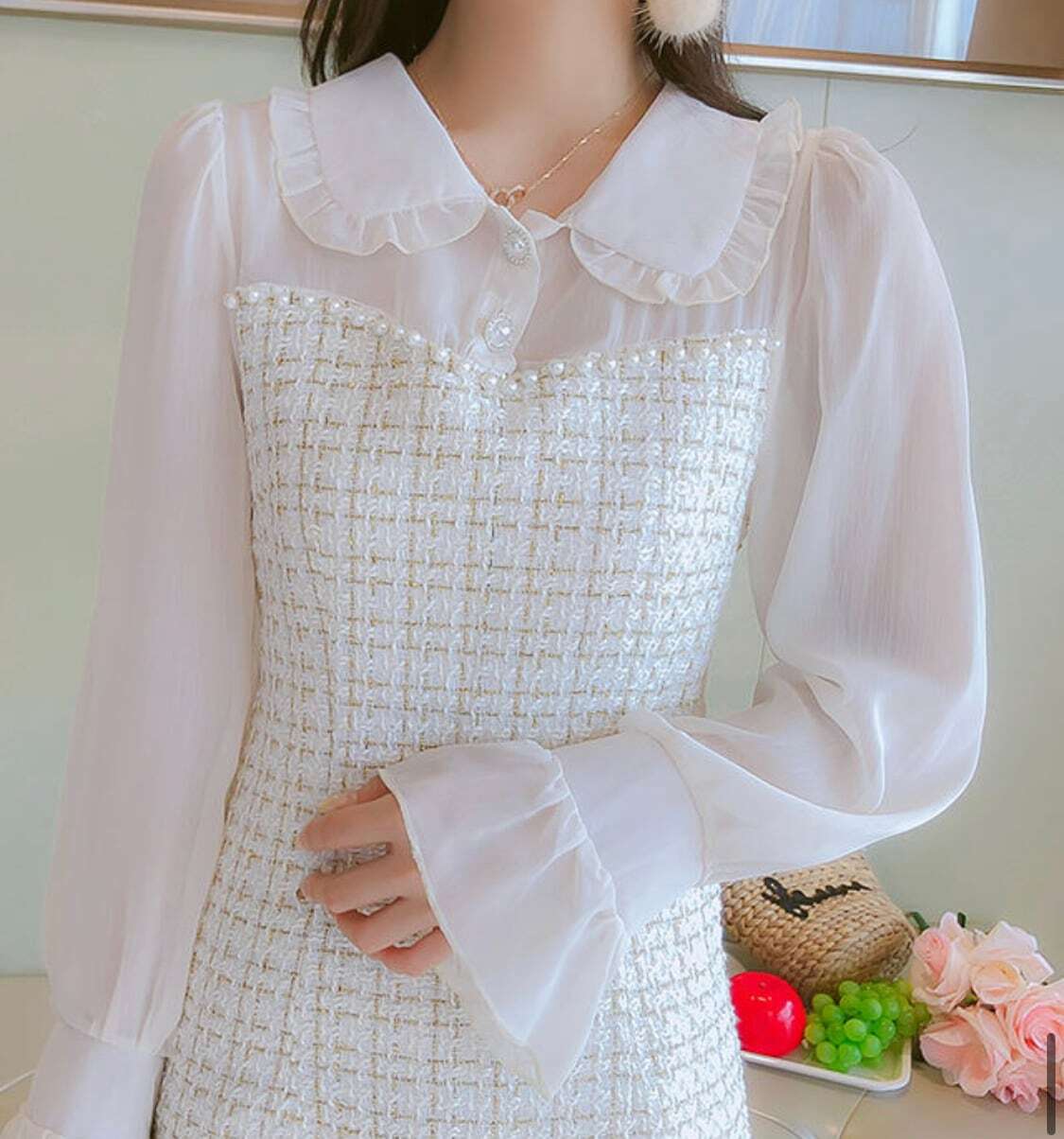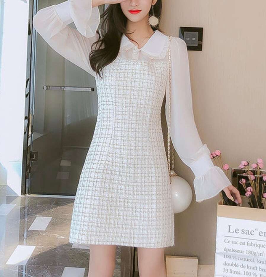 【送料無料】レディース ツイード ホワイト ワンピース シースルー 透け感 長袖 襟付き クラシカル お呼ばれ フォーマル パーティー ガーリー 大人可愛い ママコーデ ママファッション 韓国系 オルチャン 人気 トレンド 新作 20代 30代 40代 きれいめ レトロ シンプル お出かけ デート おしゃれ 通勤 通学 オフィス OL デイリー 普段着 ラフ カジュアル フェミニン シック ゆったり 体型カバー 着痩せ 着回し インスタ映え 春 秋 冬 CO4678