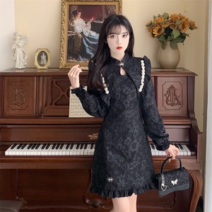 シックな雰囲気でありつつ、フェミニン要素を含むワンピース。