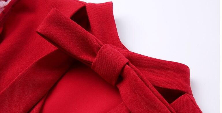 露出を抑え首の後ろに、バックリボンをデザインしています。
