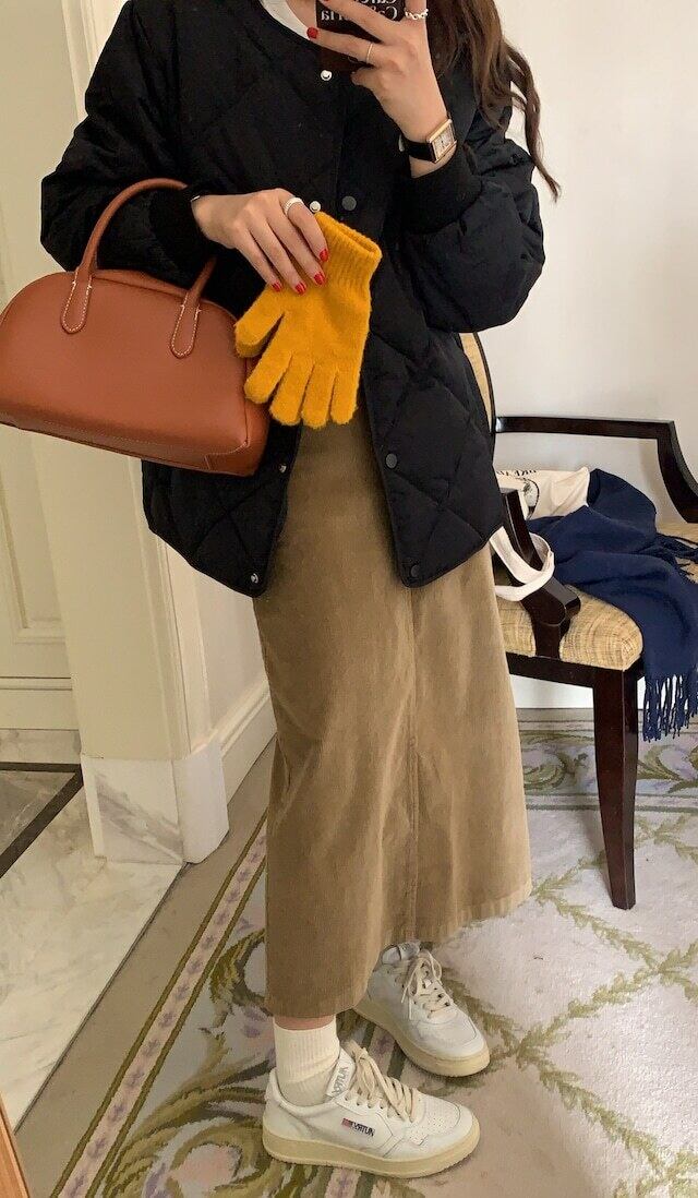ショート丈が女性らしいコーデに仕上げてくれます。