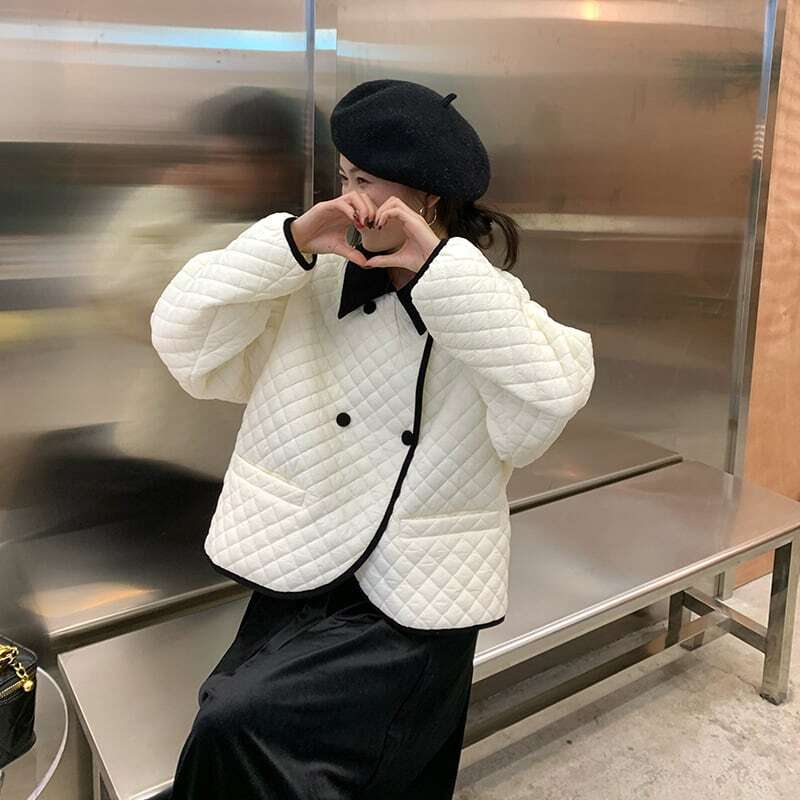 【送料無料】レディース キルティング ダブル ジャケット アウター バイカラー パイピング ショート オーバーサイズ 上着 モノトーン 大人可愛い ママコーデ ママファッション 韓国系 オルチャン 人気 トレンド 新作 20代 30代 40代 きれいめ レトロ シンプル お出かけ デート おしゃれ 通勤 通学 オフィス OL デイリー 普段着 ラフ カジュアル フェミニン シック ゆったり 体型カバー 着痩せ 着回し インスタ映え 春 秋 冬 CO4616