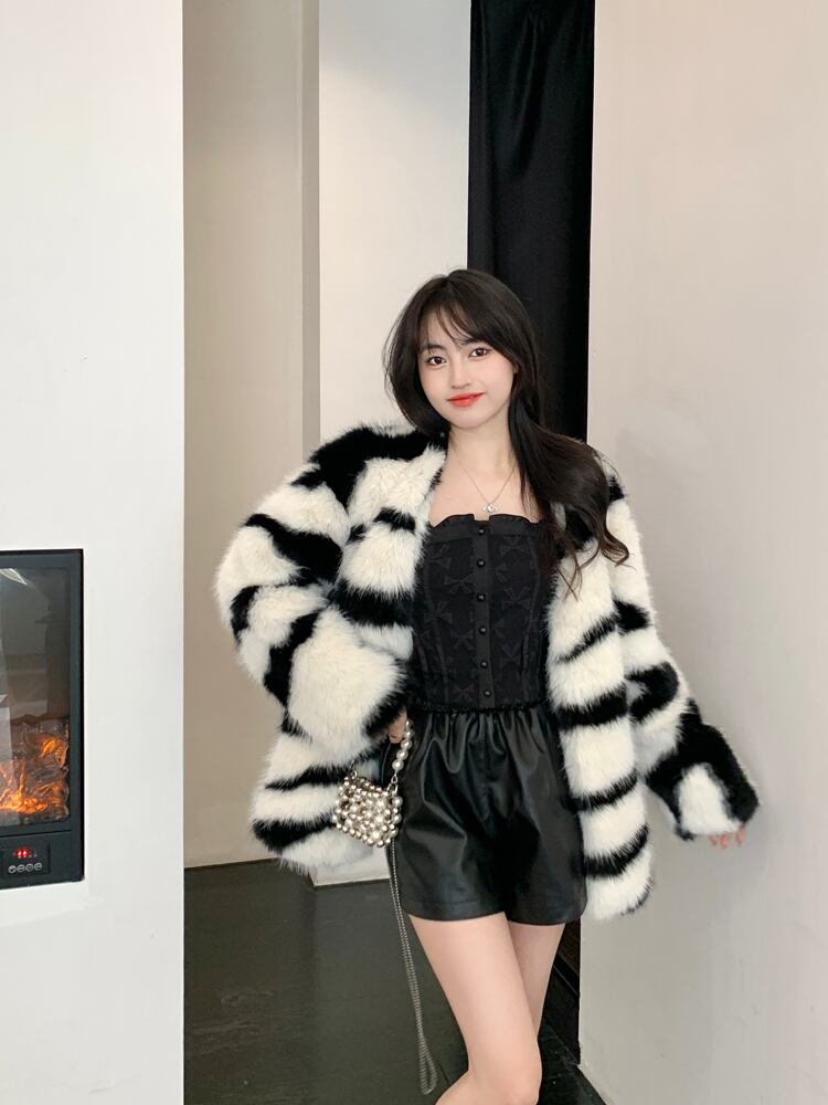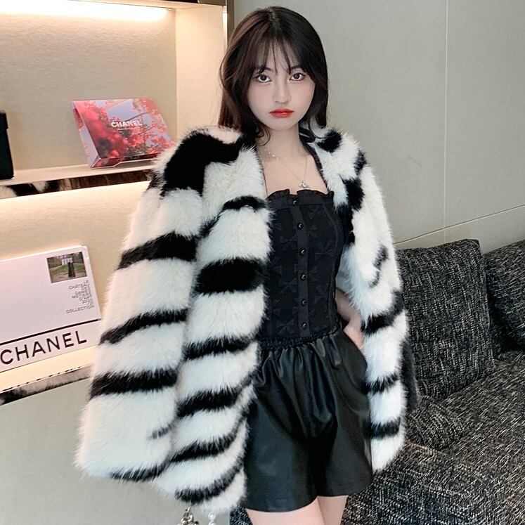 【送料無料】レディース ゼブラ Vネック ファー コート アウター ジャケット こもこも ふわふわ バイカラー 大人可愛い ママコーデ ママファッション 韓国系 オルチャン 人気 トレンド 新作 20代 30代 40代 きれいめ レトロ シンプル お出かけ デート おしゃれ 通勤 通学 オフィス OL デイリー 普段着 ラフ カジュアル フェミニン シック ゆったり 体型カバー 着痩せ 着回し インスタ映え 春 秋 冬 CO4646