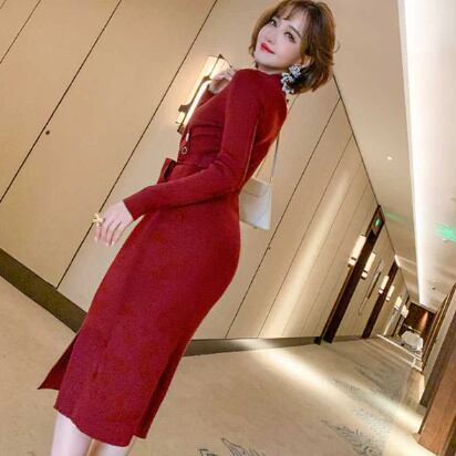 華奢見え効果のあるリブニットをタイトに仕上げたワンピース。