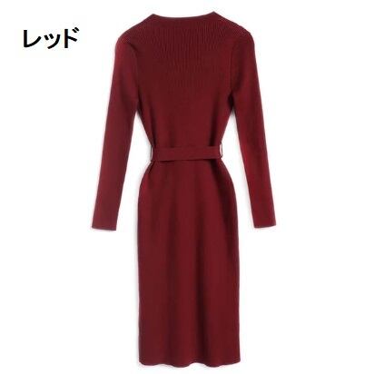 【送料無料】レディース カシュクール タイト リブ ニット ワンピース 2COLORS スリット ウエストリボン 長袖 大人可愛い ママコーデ ママファッション 韓国系 オルチャン 人気 トレンド 新作 20代 30代 40代 きれいめ レトロ シンプル お出かけ デート おしゃれ 通勤 通学 オフィス OL デイリー 普段着 ラフ カジュアル フェミニン シック ゆったり 体型カバー 着痩せ 着回し インスタ映え 春 秋 冬 CO4655
