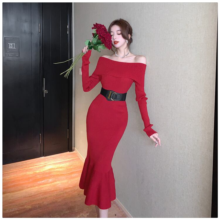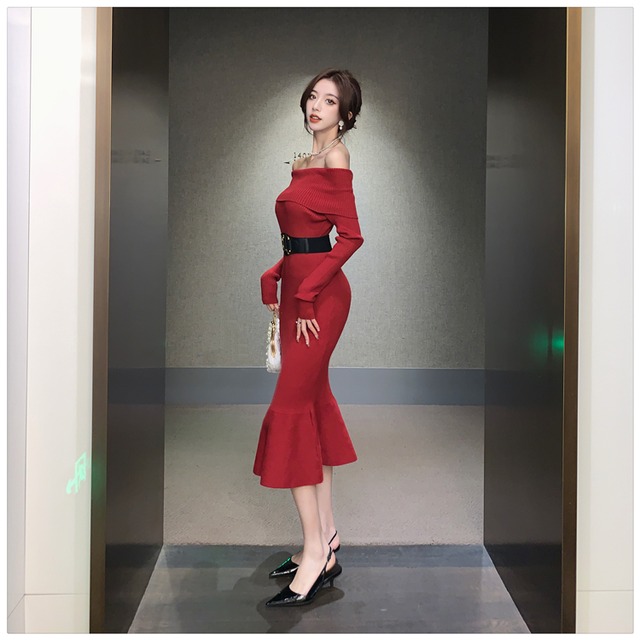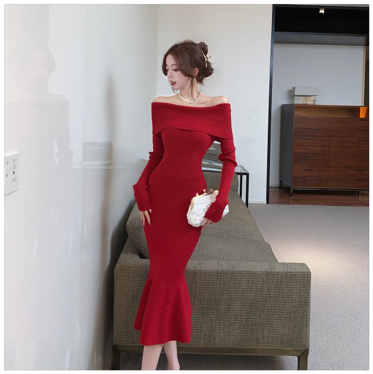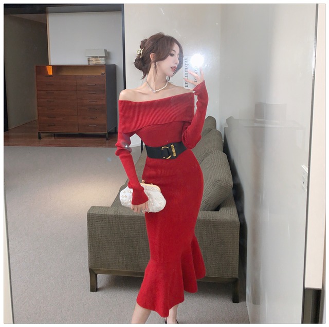 【送料無料】レディース ニット ワンピース マーメイドラインワンピース 肩見せ オフショルダー 長袖 お呼ばれ フォーマル パーティー デート 大人可愛い ママコーデ ママファッション 韓国系 オルチャン 人気 トレンド 新作 20代 30代 40代 きれいめ レトロ シンプル お出かけ デート おしゃれ 通勤 通学 オフィス OL デイリー 普段着 ラフ カジュアル フェミニン シック ゆったり 体型カバー 着痩せ 着回し インスタ映え 春 秋 冬 CO4656