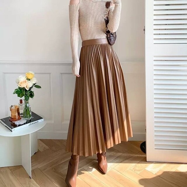 【送料無料】レディース エコレザー プリーツ スカート ロングスカート 大人可愛い ママコーデ ママファッション 韓国系 オルチャン 人気 トレンド 新作 20代 30代 40代 きれいめ レトロ シンプル お出かけ デート おしゃれ 通勤 通学 オフィス OL デイリー 普段着 ラフ カジュアル フェミニン シック ゆったり 体型カバー 着痩せ 着回し インスタ映え 春 秋 冬 CO4723