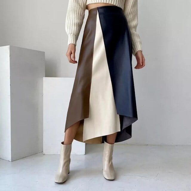 【送料無料】レディース ハイウエスト パッチワーク スカート ロングスカート イレギュラーヘム 三色 Aライン 大人可愛い ママコーデ ママファッション 韓国系 オルチャン 人気 トレンド 新作 20代 30代 40代 きれいめ レトロ シンプル お出かけ デート おしゃれ 通勤 通学 オフィス OL デイリー 普段着 ラフ カジュアル フェミニン シック ゆったり 体型カバー 着痩せ 着回し インスタ映え 春 秋 冬 CO4728