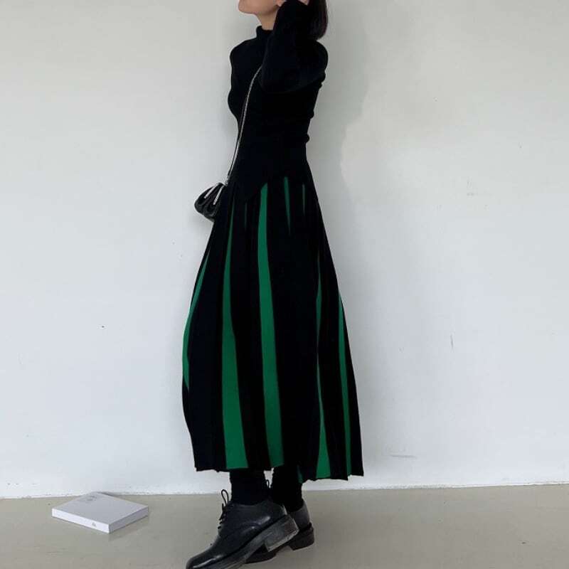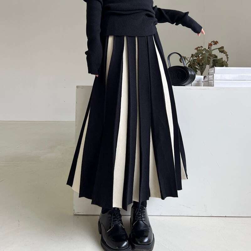 【送料無料】レディース 幅広プリーツ バイカラーライン ニット スカート マルチカラー 配色カラー 細見え 美シルエット 大人可愛い ママコーデ ママファッション 韓国系 オルチャン 人気 トレンド 新作 20代 30代 40代 きれいめ レトロ シンプル お出かけ デート おしゃれ 通勤 通学 オフィス OL デイリー 普段着 ラフ カジュアル フェミニン シック ゆったり 体型カバー 着痩せ 着回し インスタ映え 春 秋 冬 CO4729