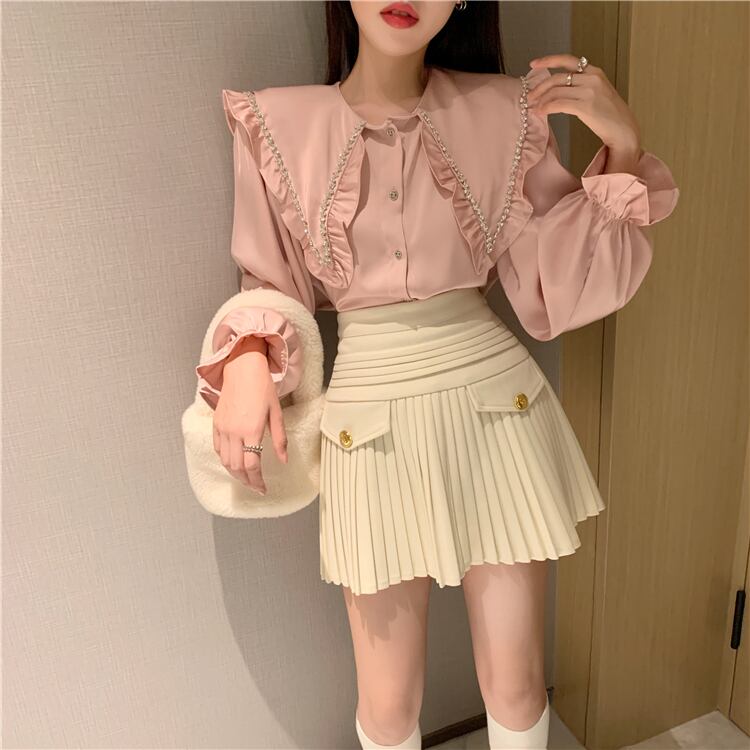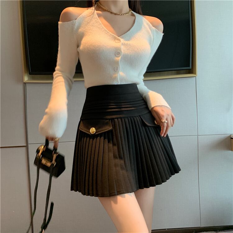 ラインの広がりがプリーツミニスカート。