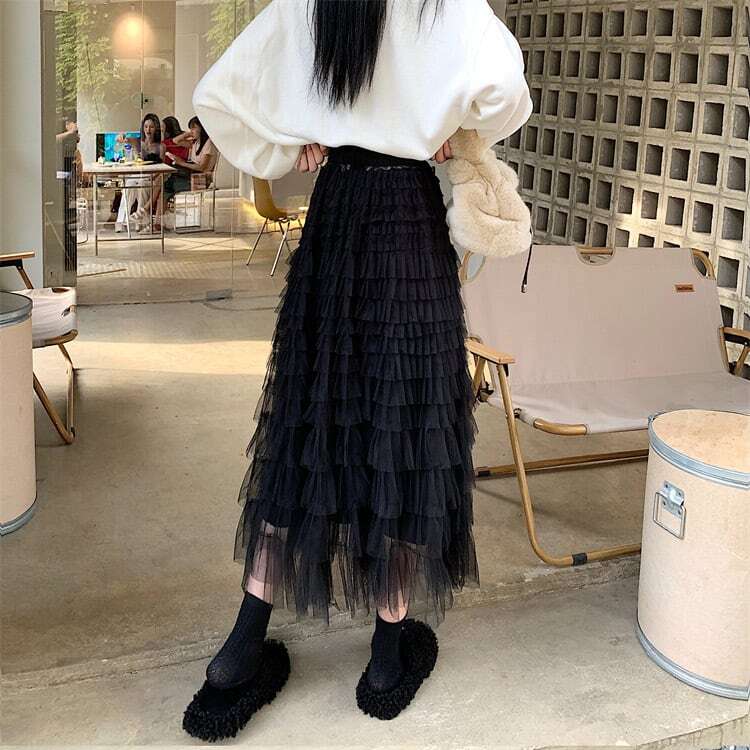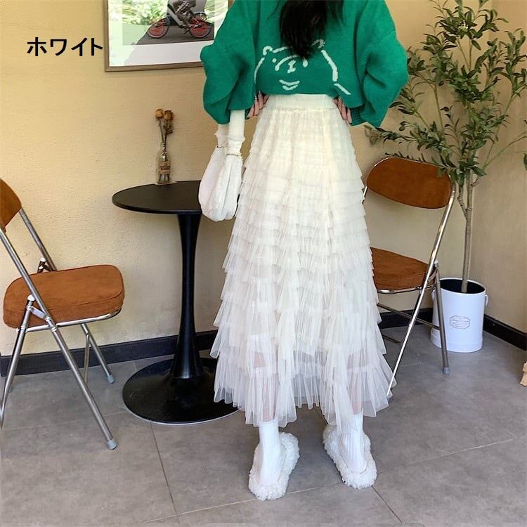 【送料無料】レディース チュール ティアード フリルスカート 4色 ロングスカート ウエストゴム 無地 スカート 大人可愛い ママコーデ ママファッション 韓国系 オルチャン 人気 トレンド 新作 20代 30代 40代 きれいめ レトロ シンプル お出かけ デート おしゃれ 通勤 通学 オフィス OL デイリー 普段着 ラフ カジュアル フェミニン シック ゆったり 体型カバー 着痩せ 着回し インスタ映え 春 秋 冬 CO4732