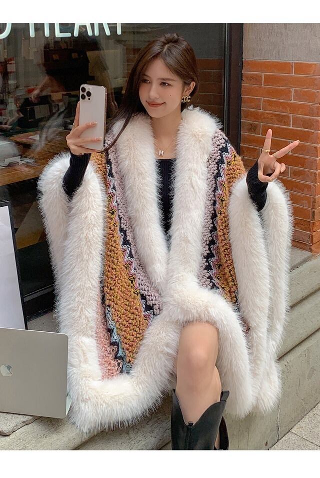【送料無料】レディース ケープ エスニック柄 フェイクファー マント 厚手 エレガント コート アウター もこもこ ふわふわ モノトーン 大人可愛い ママコーデ ママファッション 韓国系 オルチャン 人気 トレンド 新作 20代 30代 40代 きれいめ レトロ シンプル お出かけ デート おしゃれ 通勤 通学 オフィス OL デイリー 普段着 ラフ カジュアル フェミニン シック ゆったり 体型カバー 着痩せ 着回し インスタ映え 春 秋 冬 CO4763