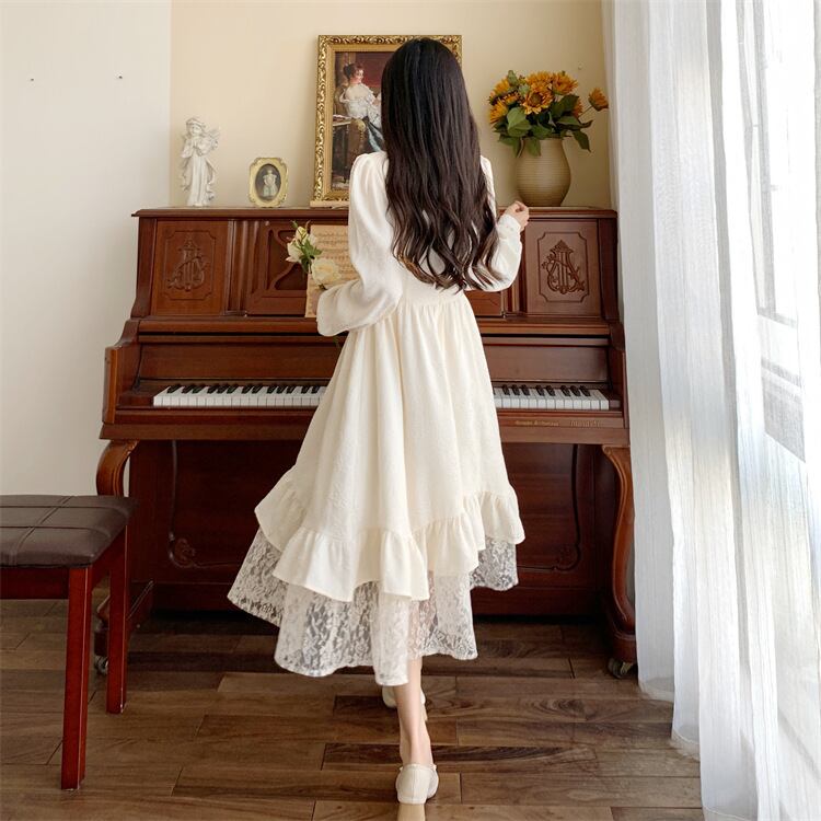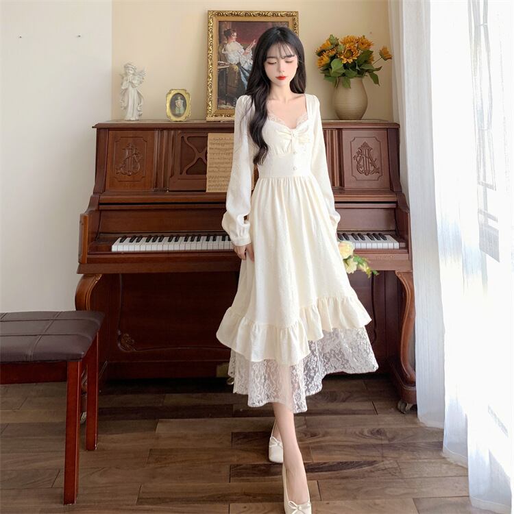 【送料無料】レディース 裾フリル レース切替 上品 ワンピース リボン ドレス フォーマル お呼ばれ パーティー 大きいサイズ 大人可愛い ママコーデ ママファッション 韓国系 オルチャン 人気 トレンド 新作 20代 30代 40代 きれいめ レトロ シンプル お出かけ デート おしゃれ 通勤 通学 オフィス OL デイリー 普段着 ラフ カジュアル フェミニン シック ゆったり 体型カバー 着痩せ 着回し インスタ映え 春 秋 冬 CO4743