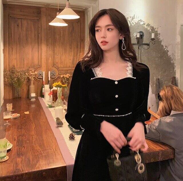 【送料無料】レディース スクエア レース ベルベット ロング ワンピース ドレス フォーマル お呼ばれ パーティー 大きいサイズ 大人可愛い ママコーデ ママファッション 韓国系 オルチャン 人気 トレンド 新作 20代 30代 40代 きれいめ レトロ シンプル お出かけ デート おしゃれ 通勤 通学 オフィス OL デイリー 普段着 ラフ カジュアル フェミニン シック ゆったり 体型カバー 着痩せ 着回し インスタ映え 春 秋 冬 CO4744