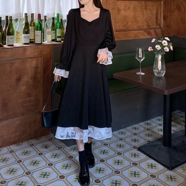袖口と裾部分のホワイトレースが清楚な印象。