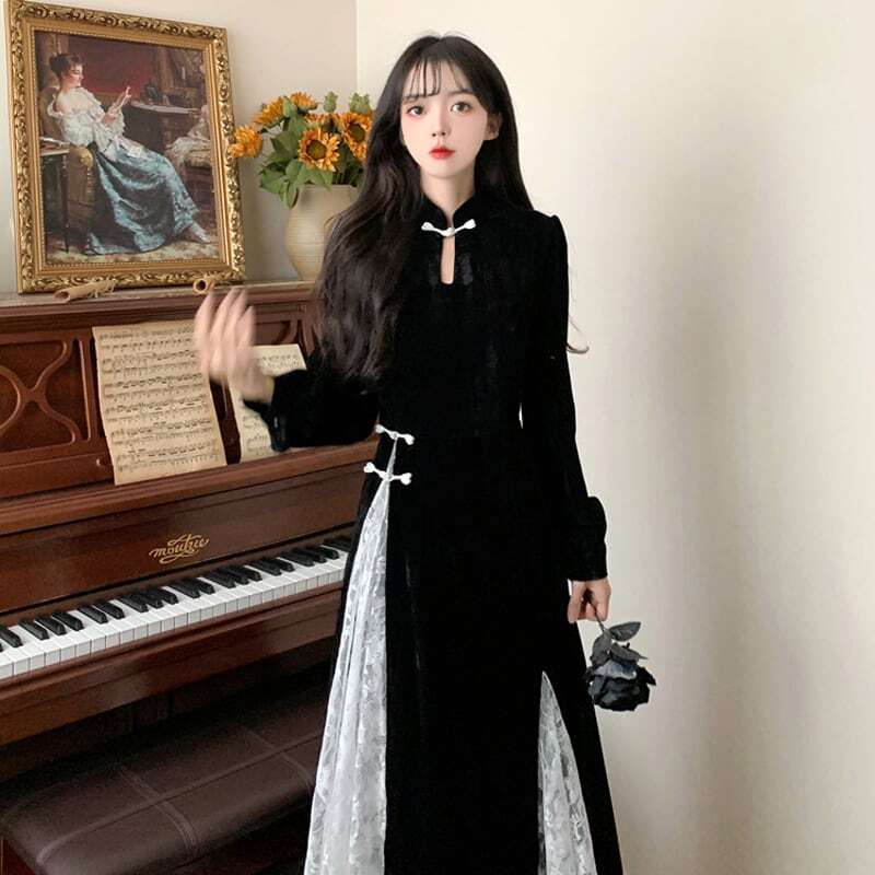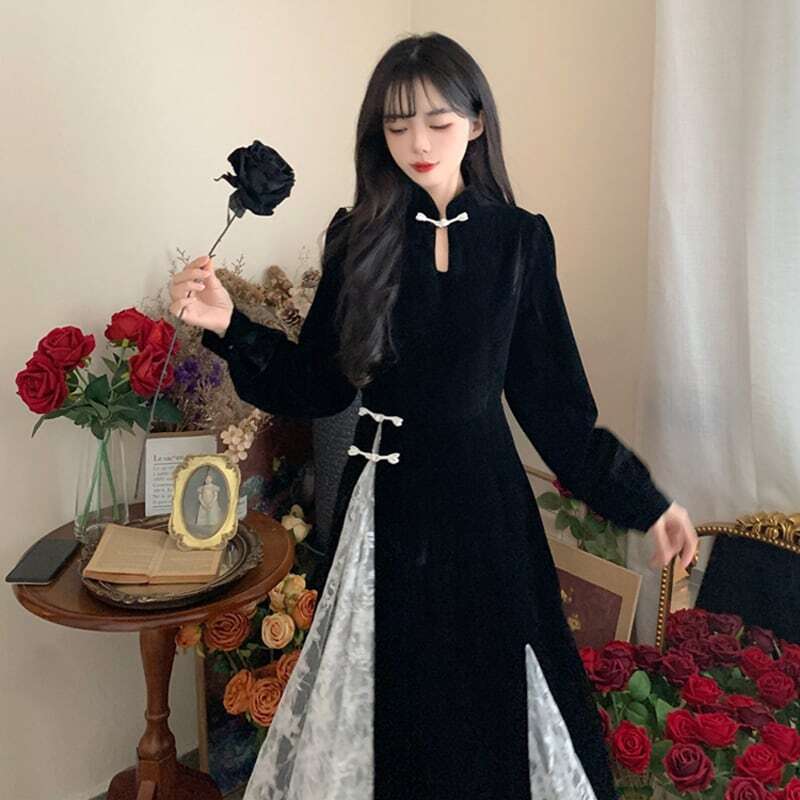 【送料無料】レディース チャイナ風 ワンピース ドレス 大きいサイズ レディースワンピース ベルベット レース お呼ばれ フォーマル パーティー ブラック 大人可愛い ママコーデ ママファッション 韓国系 オルチャン 人気 トレンド 新作 20代 30代 40代 きれいめ レトロ シンプル お出かけ デート おしゃれ 通勤 通学 オフィス OL デイリー 普段着 ラフ カジュアル フェミニン シック ゆったり 体型カバー 着痩せ 着回し インスタ映え 春 秋 冬 CO4752